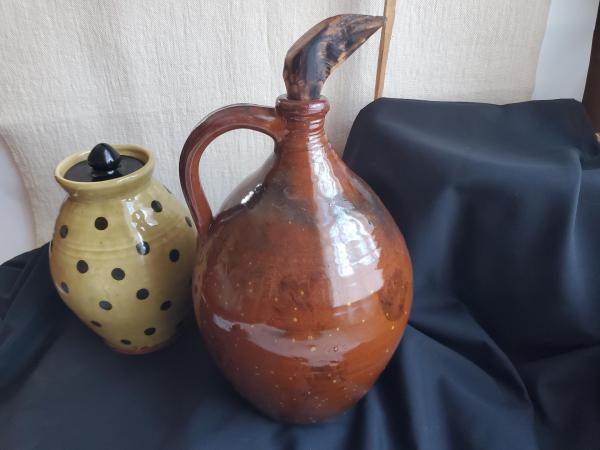 Redware Soap or Lotion Dispenser Jug with Black Dots
